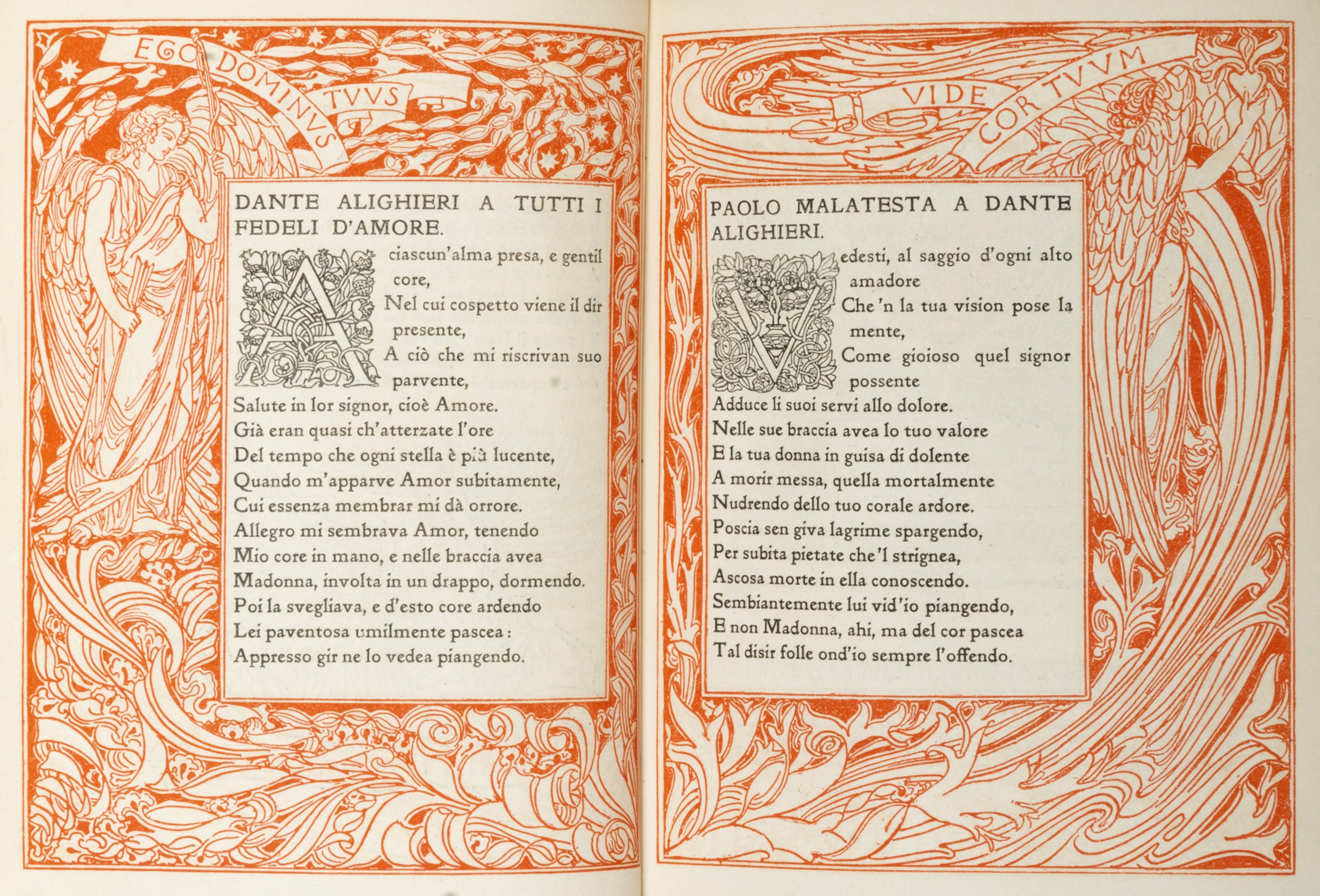 1902 Milano, Treves, 1902. Caratteri ripresi da modelli rinascimentali in rosso e nero, con numerosi fregi ed illustrazioni xilografiche di Adolfo De Carolis, legatura editoriale in piena pergamena flessibile con unghie, titoli e fregi in oro al dorso e, al centro del piatto anteriore, grande incisione con le parole Noi leggevamo, esemplare in barbe. § Isotta Guttadàuro ed altre poesie. Roma, Editrice La Tribuna, 1886. Ritratto in fototipia di Isotta, con 22 tavole realizzate a fototipia dallo stabilimento Danesi di Roma da disegni di V. Cabianca, O, Carlandi, G. Cellini, E. Coleman, M. De Maria, C. Formilli, A. Morani, A. Ricci e G. A. Sartorio, in monotinta a diversi colori a piena pagina protette da velina, raffiguranti versi riportati a fronte, legatura in mezza pelle moderna che preserva la vecchia brossura. § Fedra. Milano, Fratelli Treves, 1909. 5 xilografie a piena pagina, testatine, finalini e capilettera di A. De Carolis, legatura mezza pelle verde a punte, conservata la bella copertina editoriale avana con xilografie in nero e amaranto di A. De Carolis.