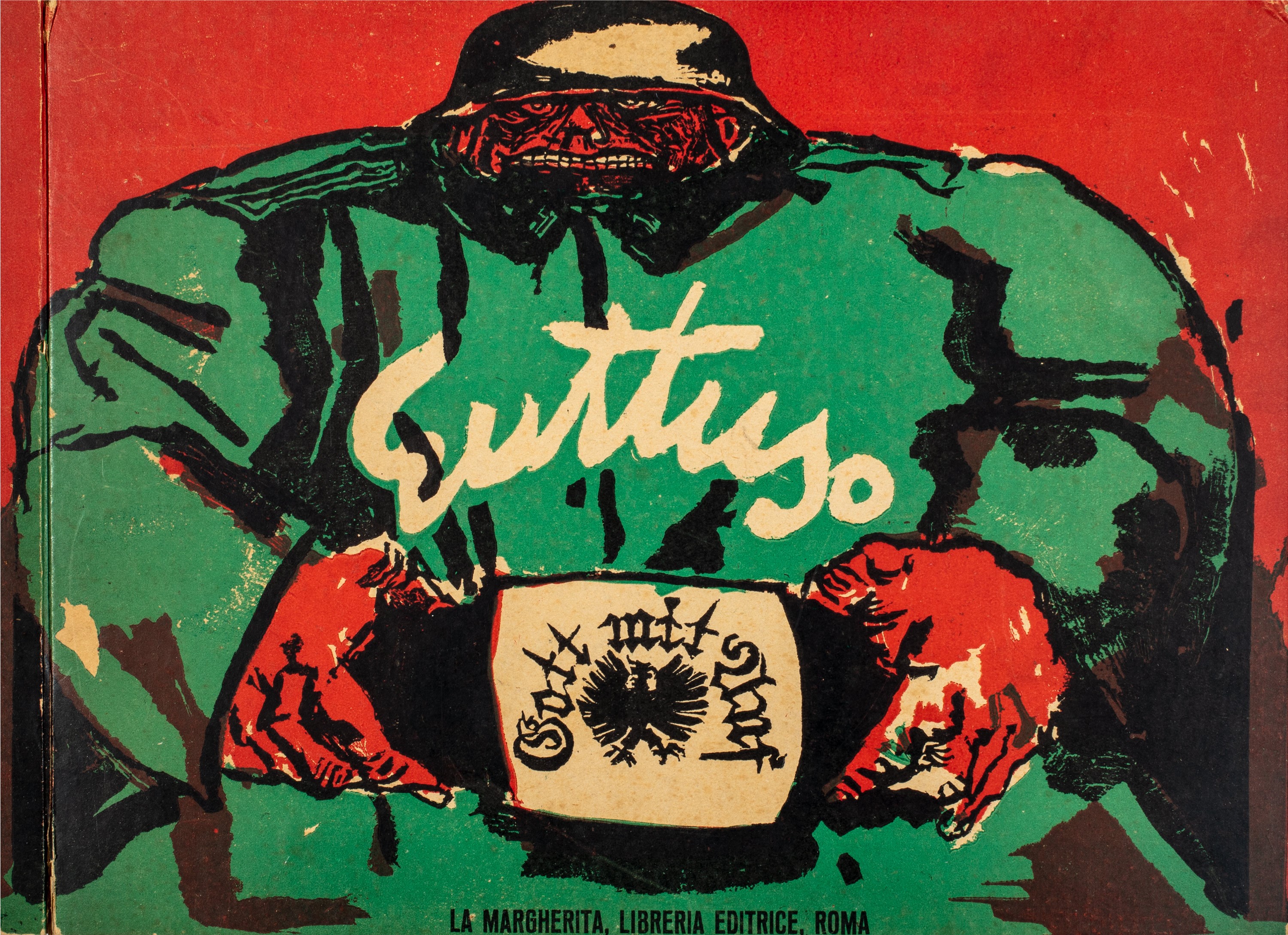 volume con tavole in bianco e nero ed a colori 1945 Roma, La Margherita, 1945. In 4° oblungo. Con 24 tavole a colori e in bianco e nero a piena pagina nel testo, rare e lievi fioriture, brossura editoriale in cartoncino, piatto anteriore illustrato a colori su disegno dell'artista, con lacune e difetti al dorso, piatto posteriore parzialmente staccato, lievi difetti. Dedica alla carta di guardia datata 1955.