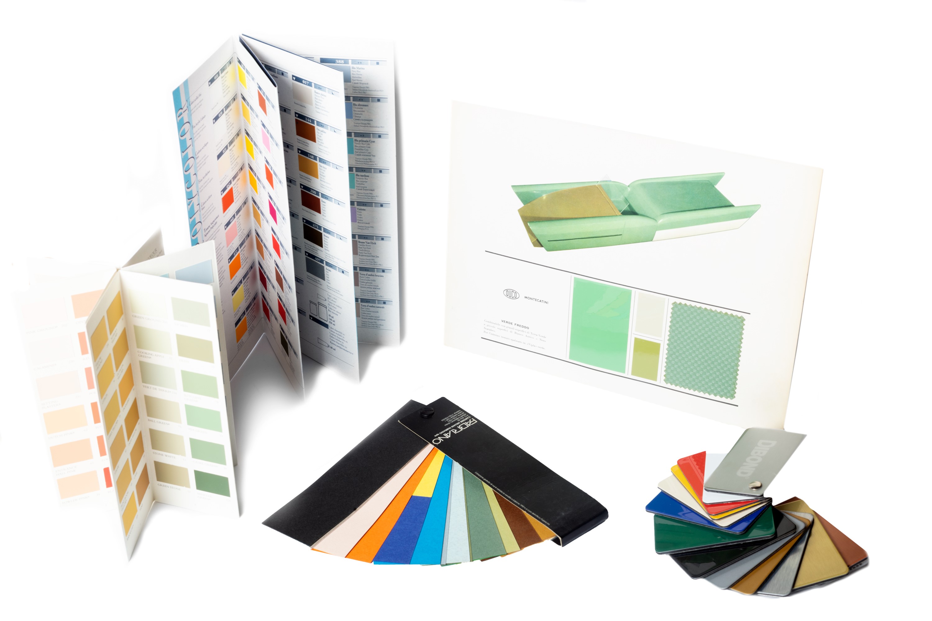 1900 Vastissimo insieme di pantoni, campionari, specimina, pubblicazioni tecniche, assortimenti, saggi, selezioni, tutti volti a illustrare le diverse sfumature di colori a scopi prettamente commerciali. Sono pubblicazioni eterogenee, di poche carte o anche interi volumi realizzati su supporti di diverso tipo, carta, stoffa, laminati etc. Coprono un arco cronologico che va dai primi decenni del Novecento sino agli anni '80 circa. Nel lotto anche alcune rare pubblicazioni teoriche sul colore.