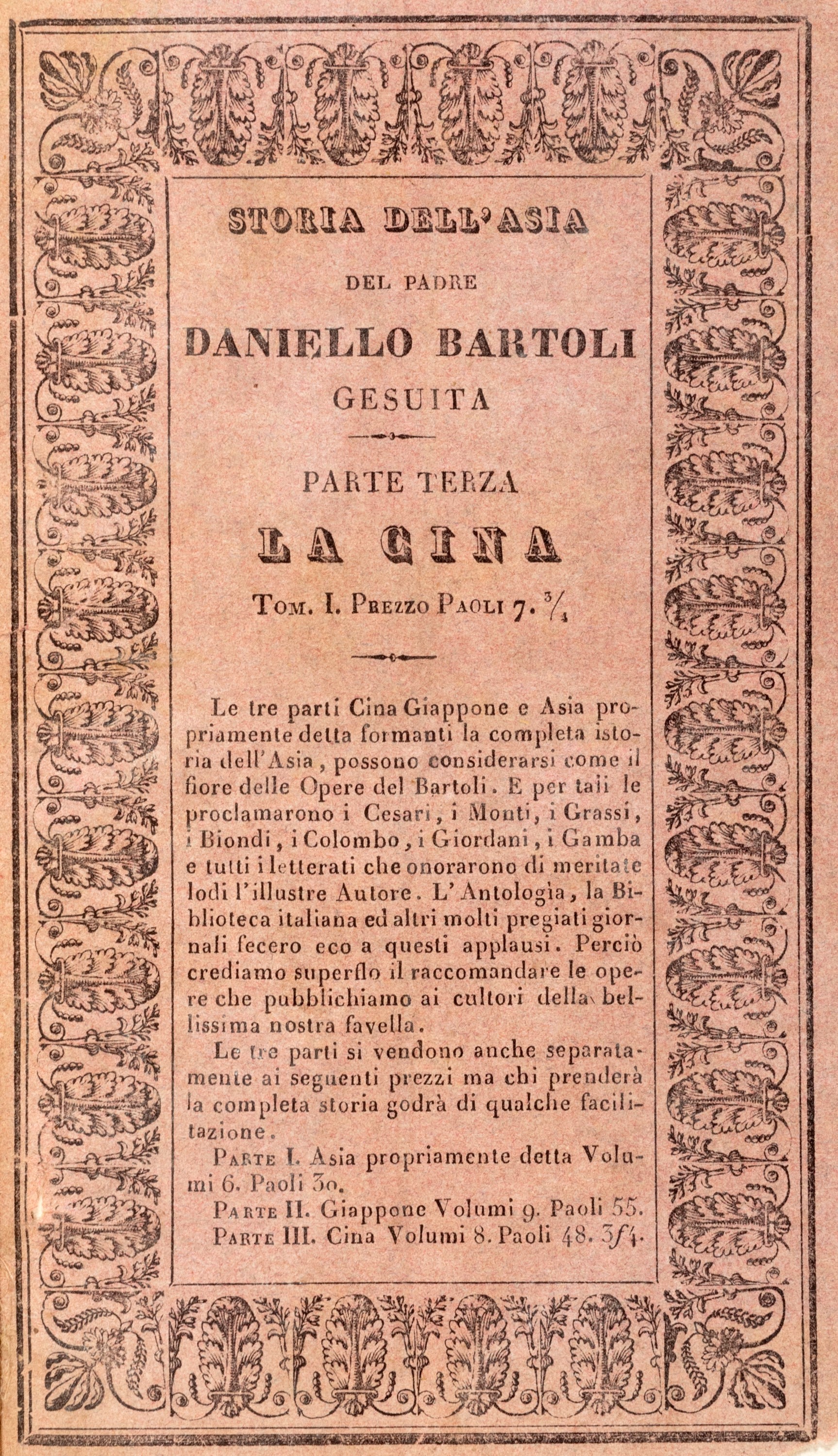 1832 Firenze, Simone Birindelli,1832. In 8°. 4 libri in 8 voll. Con ritratto dell'autore in antiporta al I vol., lievi e sporadiche fioriture e arrossature, qualche lieve alone di umidità, brossura editoriale originale in cartoncino entro legatura di epoca successiva in simil-legno, autore, titolo e numero di tomo impressi in oro entro tassello al dorso.