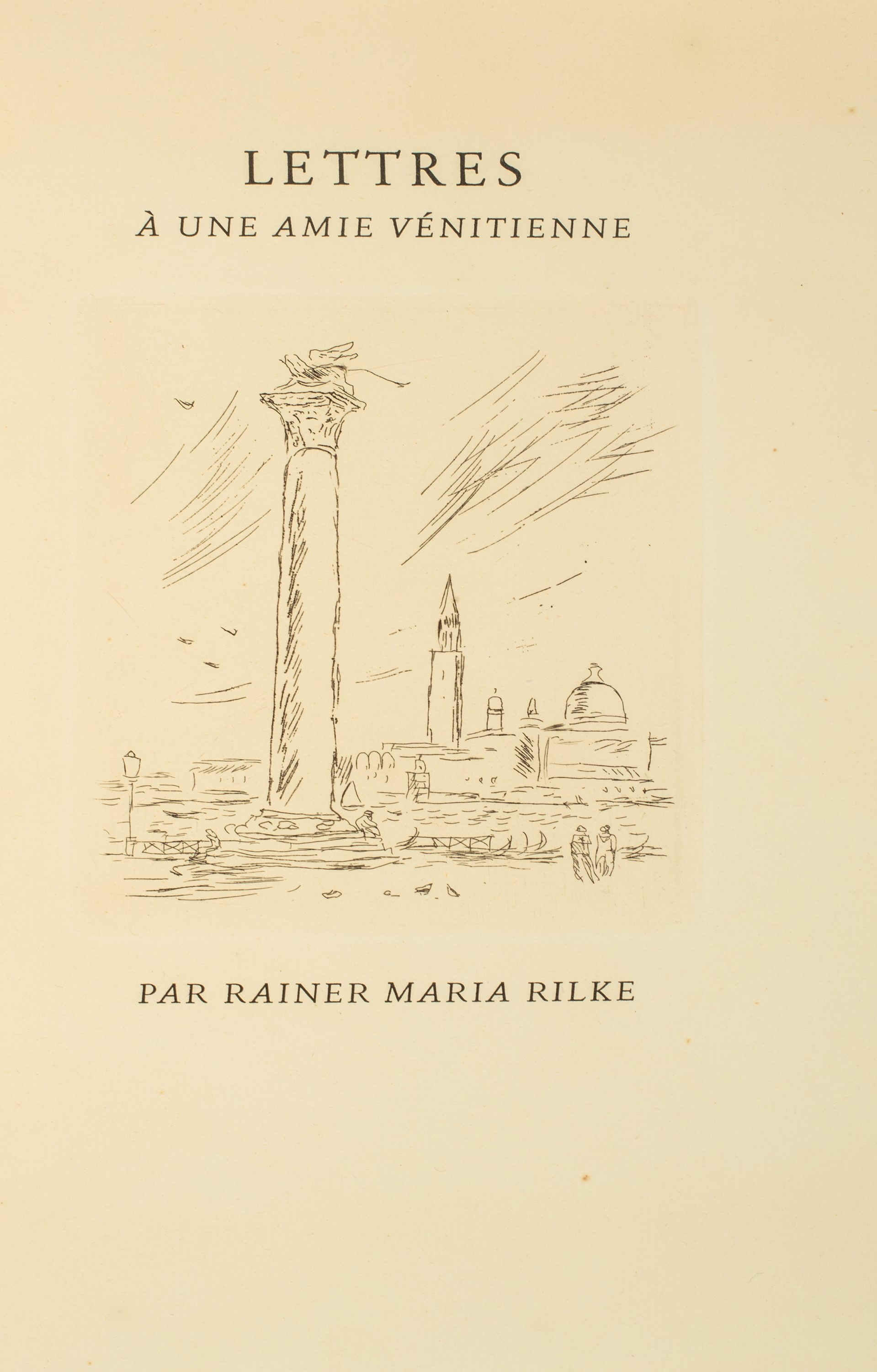 1941 Verona, Bodoni, 1941. In 8°. Acquaforte di Mario Vellani Marchi al frontespizio, testo in francese e tedesco, legatura editoriale in piena pergamena, titolo impresso in oro al dorso, custodia in cartoncino marrone.