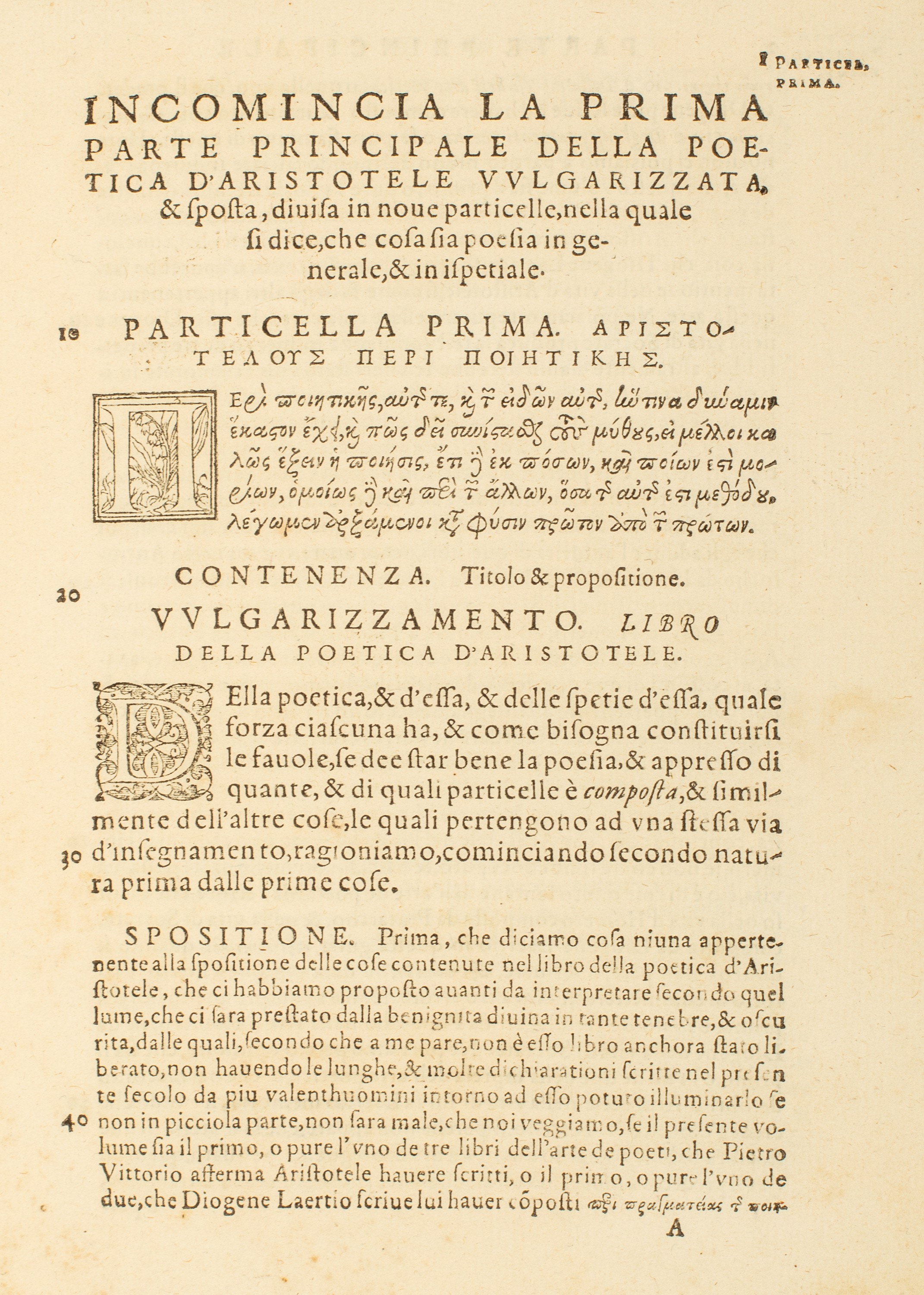 1576 Basilea, Pietro de Sedabonis, 1576. In 4°. Marca tipografica al frontespizio incisa in rame, capilettera decorati incisi, testo in carattere romano e greco, alcune note manoscritte, frontespizio sciupato e con delicati restauri, bruniture e gore d’acqua, piccolo foro di tarlo al margine bianco interno di alcuni fascicoli, nell’ultima parte restauri e lacune al margine interno senza perdita di testo, legatura originale in vitello marrone, dorso a 5 nervi, rovinata. Firma di appartenenza al frontespizio.