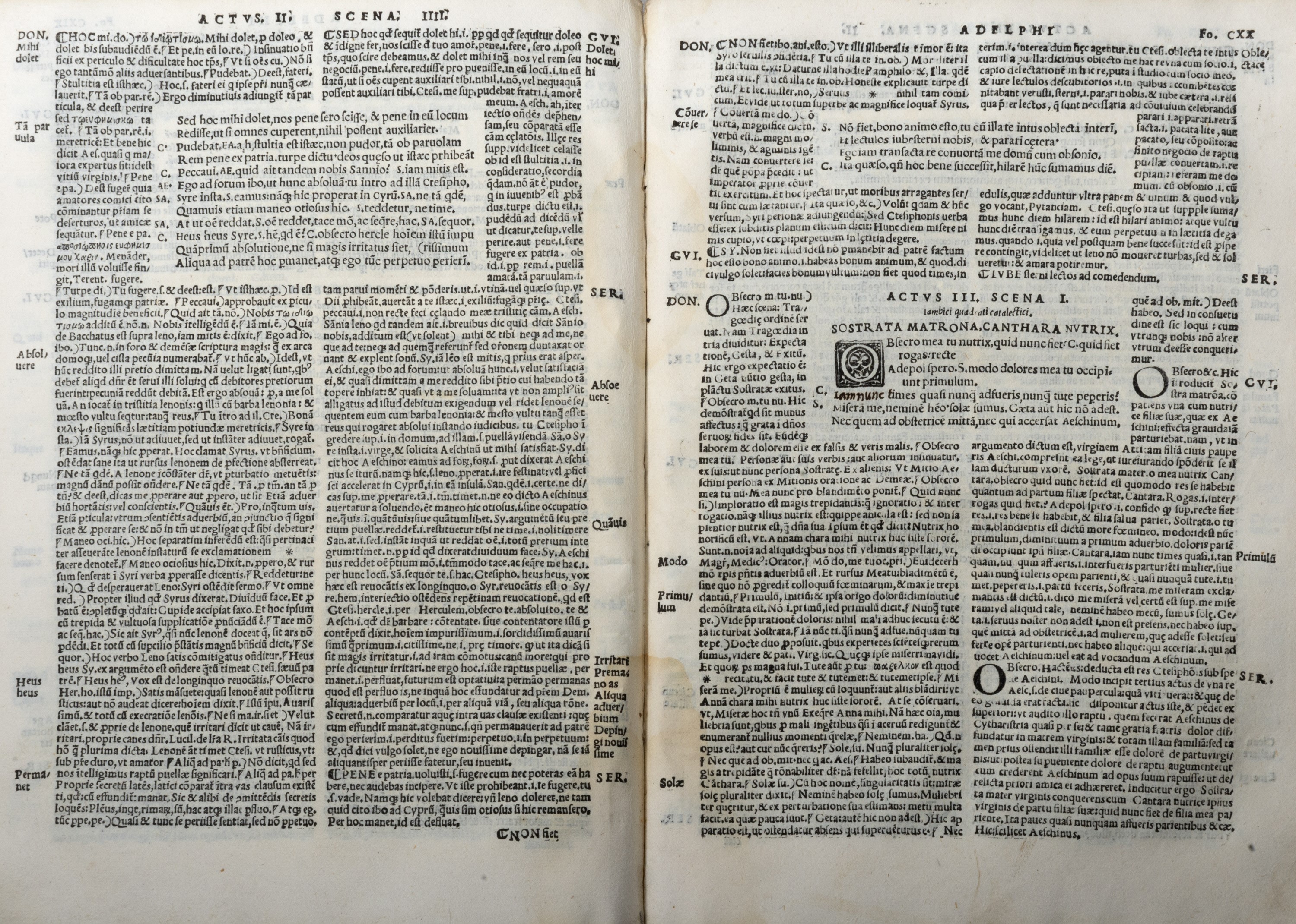 1543 Venezia, Venturini Roffinelli, 1543. In 2°. Marca tipografica al frontespizio, capilettera ornati, testo circondato dal commento, alcune vignette figurate, qualche macchia, lavori di tarlo che in alcuni casi toccano il testo, legatura in in pergamena con foglio di riuso, senza dorso.