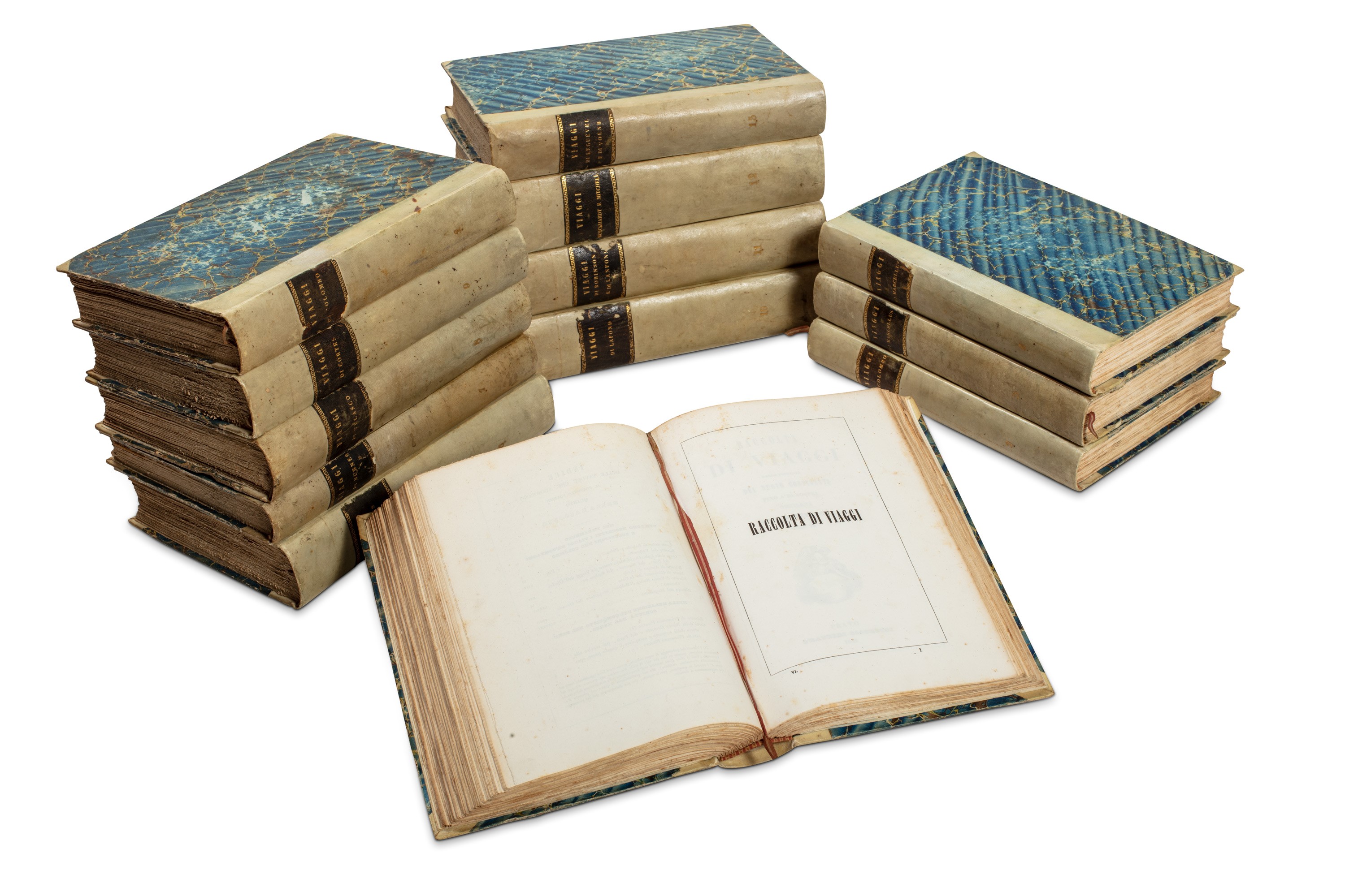 Prato, Fratelli Giachetti, 1840-45. 18 tomi in 13 volumi. In 8°. Con ritratti e numerosissime tavole incise, lievi fioriture e bruniture, legature coeve in mezza pergamena, titoli impressi in oro entro tassello al dorso, lievi difetti.
