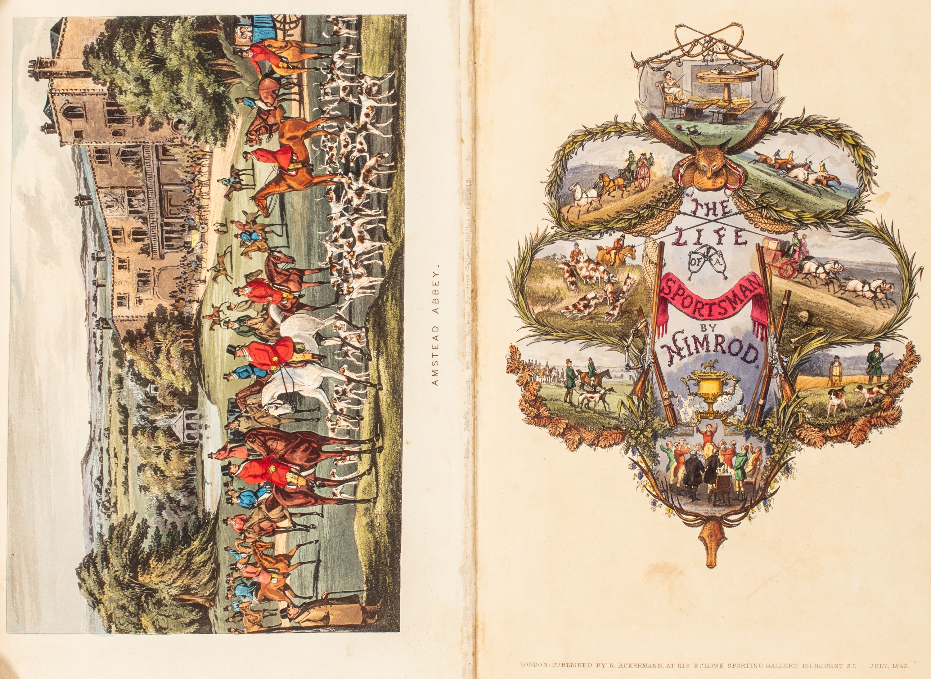 1842 Londra, Ackermann, 1842. In 8°. 36 belle illustrazioni a colori di Henry Alken, qualche pagina appena lenta, qualche sporadica fioritura, legatura editoriale in piena tela con titoli in oro sul dorso, lievi difetti. Vecchio timbro di possesso sul risguardo.