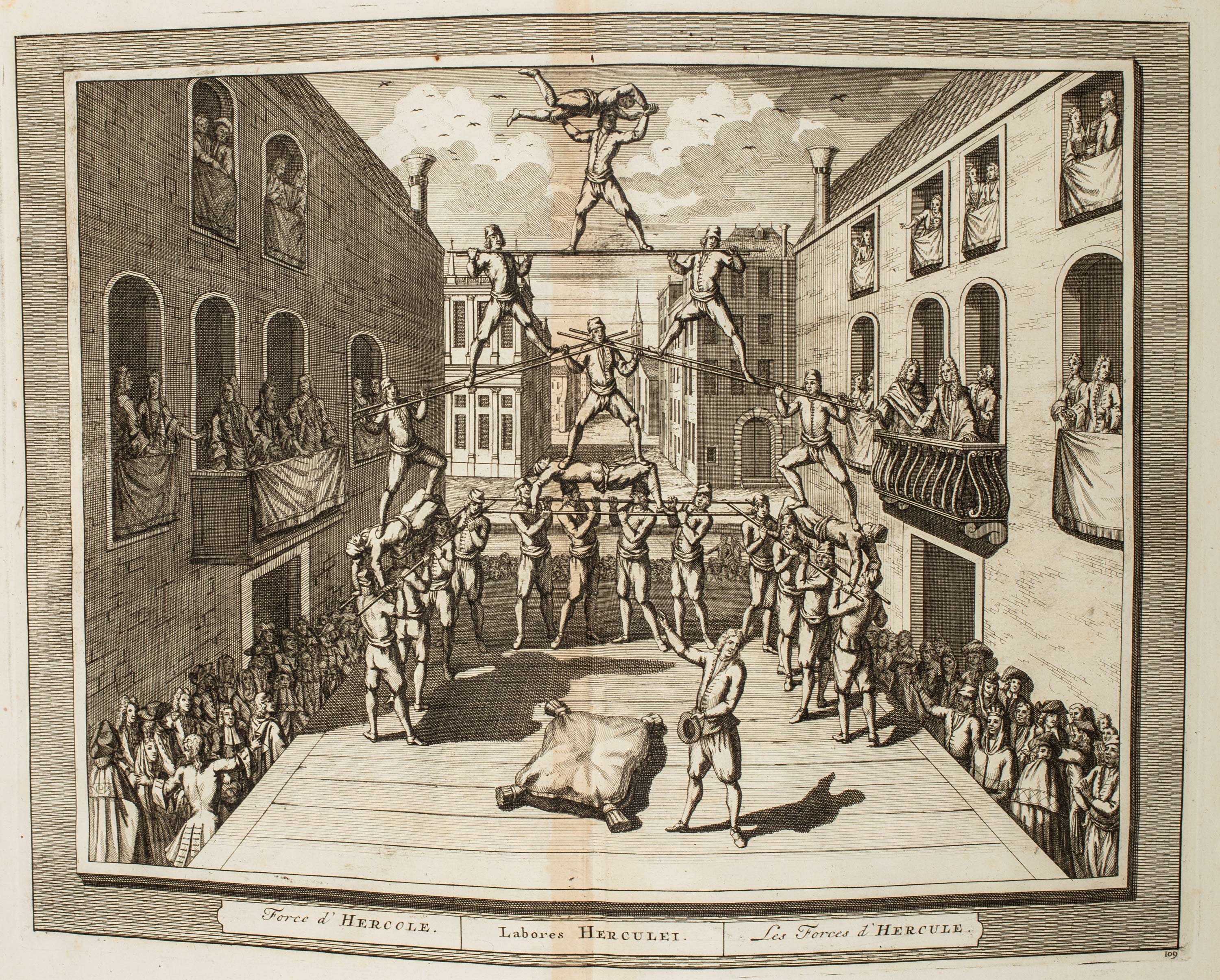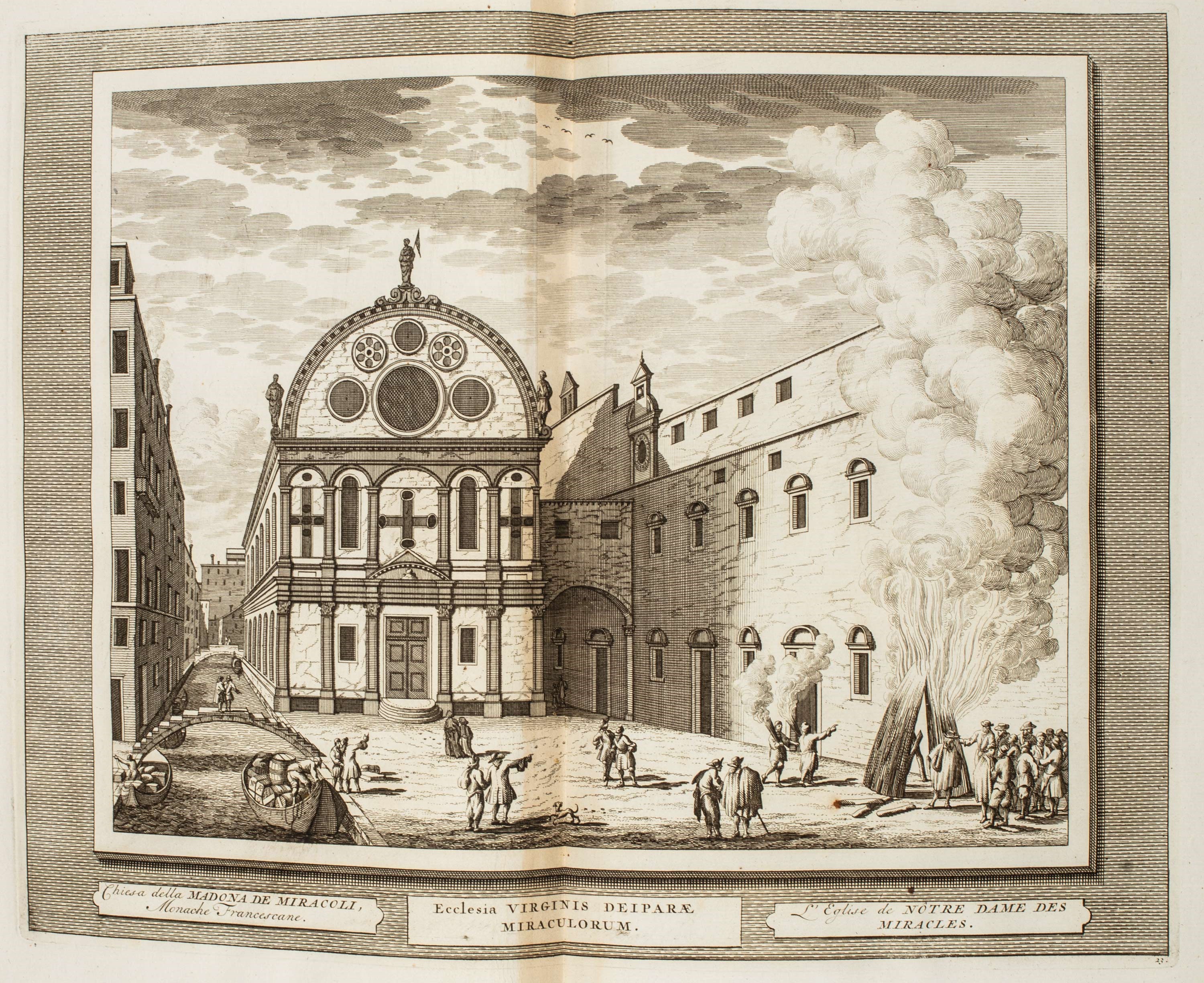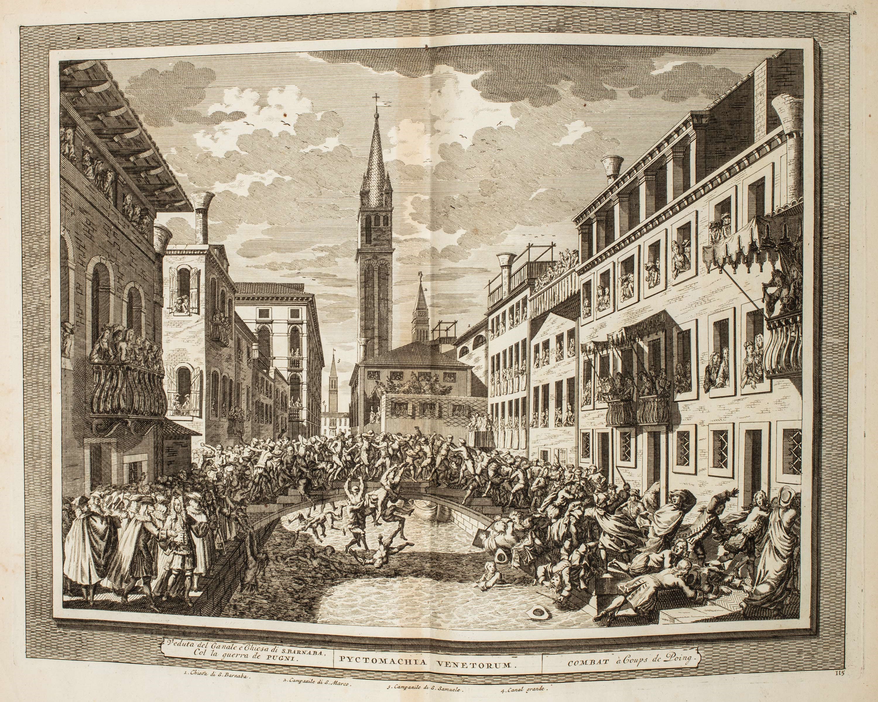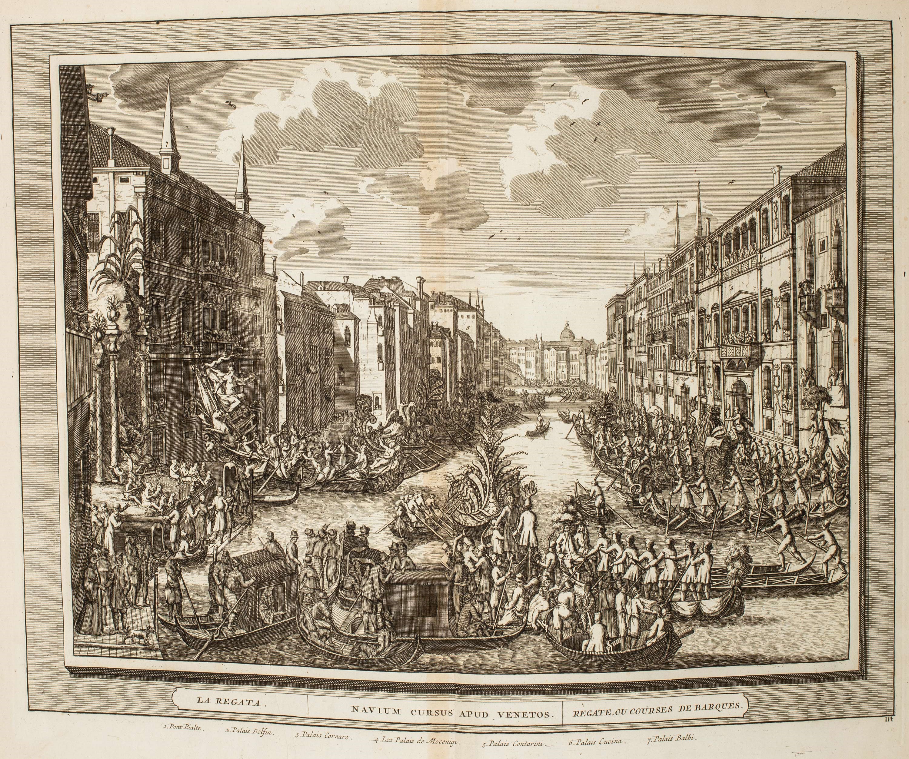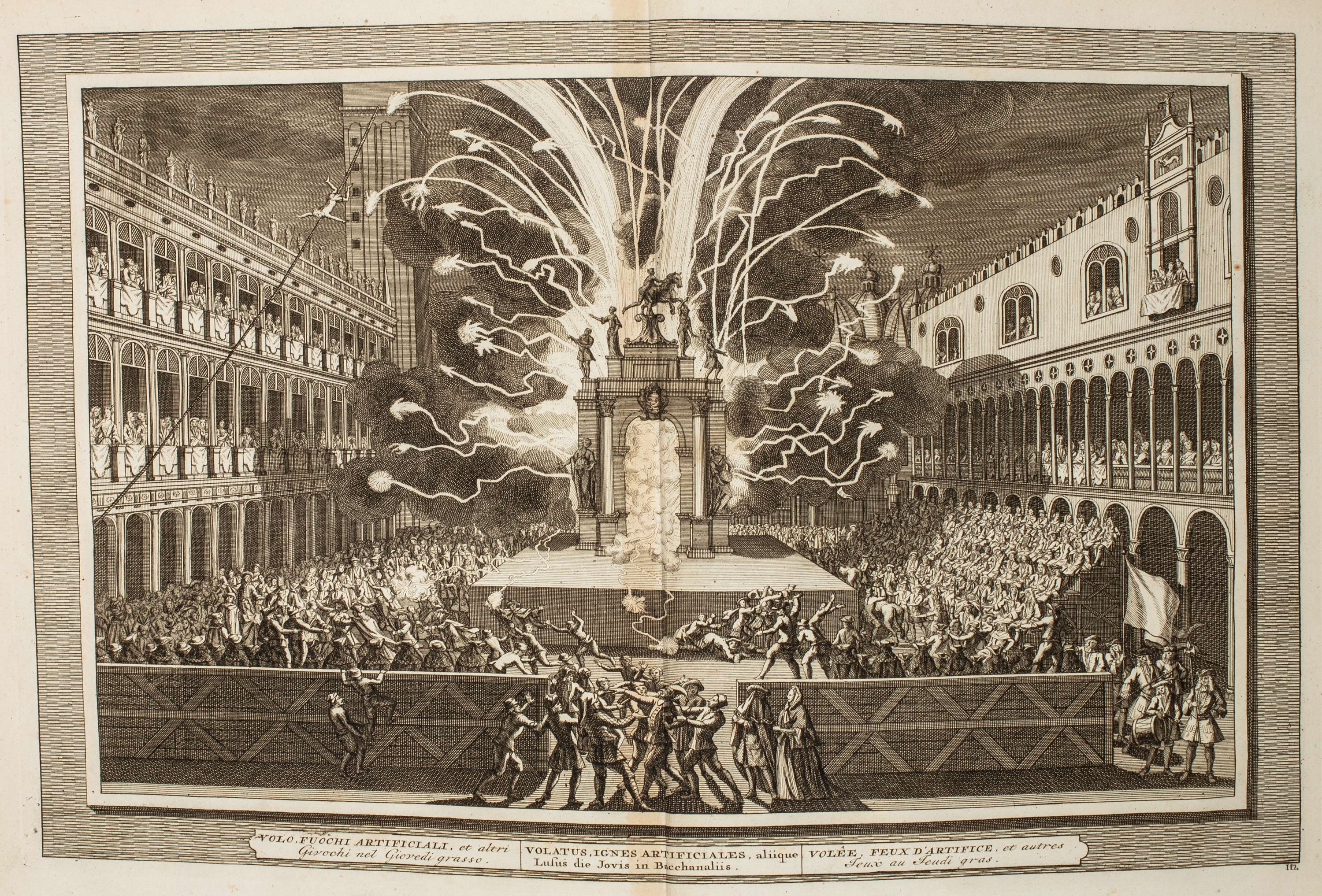 1762 Lione, Cornelius Hackius, 1762. In 2°. Con 1 antiporta incisa in rame e 112 (di 115) tavole a doppia pagina incise in rame, ciascuna numerata e con didascalia in italiano, latino, francese che raffigurano palazzi veneziani e festività, numerate 1-8, 11-101 e 103-115, lievi fioriture e qualche arrossatura, mancante il frontespizio, legatura coeva in piena pelle nocciola con tracce di titolo in oro entro tassello al dorso, tagli rossi, difetti a dorso, cerniere e bordi, qualche graffio e spellatura.