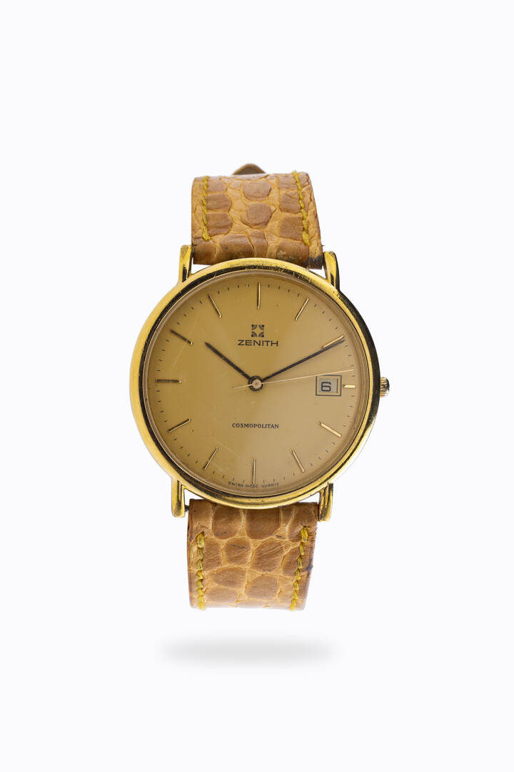 Diam. 36 mm Cassa placcata con fondello a pressione Quadrante champagne con indici applicati e datario al 3 Movimento al quarzo Il cinturino dell'orologio qui fotografato poiché eseguito con pellame di specie protetta non è in vendita ma presentato a solo scopo dimostrativo/ espositivo. Al momento della vendita dell'orologio tale cinturino non verrà fornito al nuovo acquirente