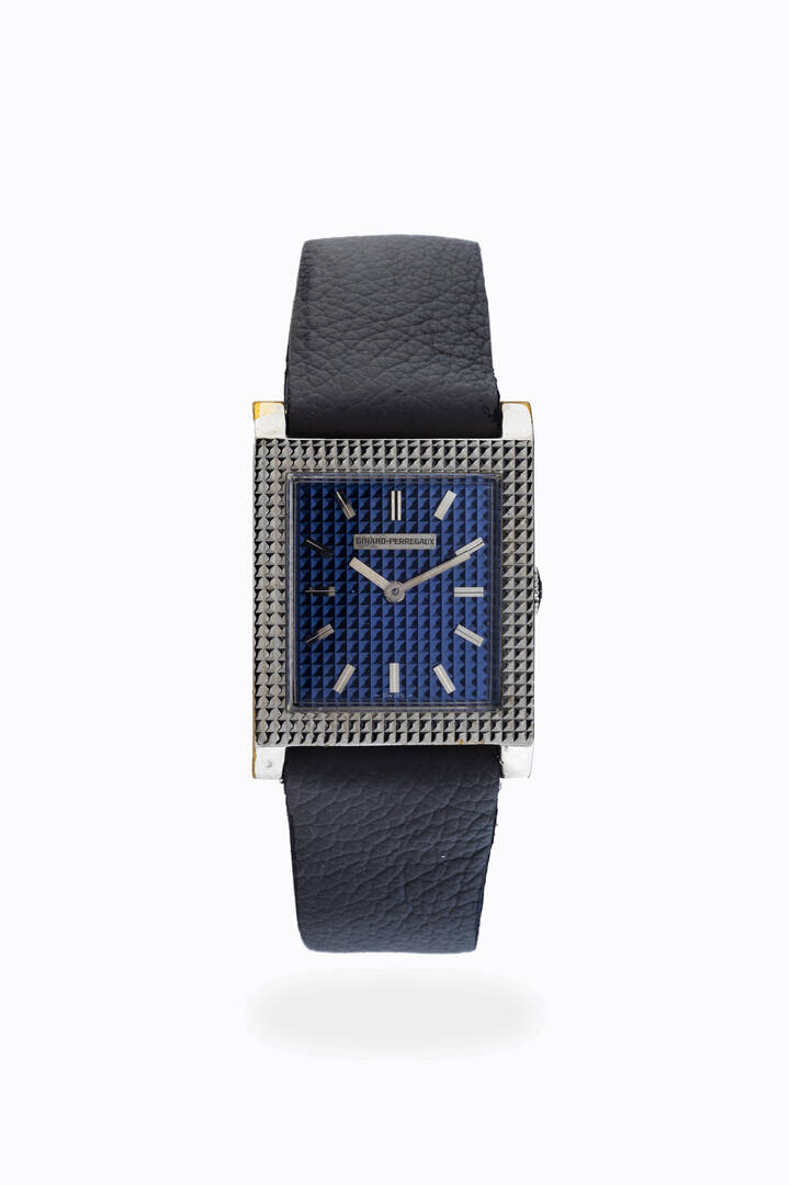 19x31 mm Cassa cromata con fondello a pressione. Quadrante blu con lavorazione clous de Paris e indici geometrici applicati Movimento a carica manuale