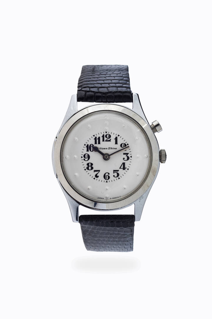 Diam. 35 mm Cassa cromata con vetro apribile per permettere ai non vedenti di “toccare” le ore. Quadrante bianco con indici a rilievo Movimento a carica manuale Il cinturino dell'orologio qui fotografato poiché eseguito con pellame di specie protetta non è in vendita ma presentato a solo scopo dimostrativo/ espositivo. Al momento della vendita dell'orologio tale cinturino non verrà fornito al nuovo acquirente