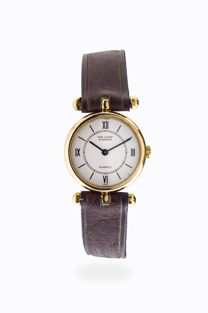 Diam. 21 mm Cassa in oro con fondello a pressione. Quadrante bianco con numeri romani e indici serigrafati Movimento al quarzo Il cinturino dell'orologio qui fotografato poiché eseguito con pellame di specie protetta non è in vendita ma presentato a solo scopo dimostrativo/ espositivo. Al momento della vendita dell'orologio tale cinturino non verrà fornito al nuovo acquirente