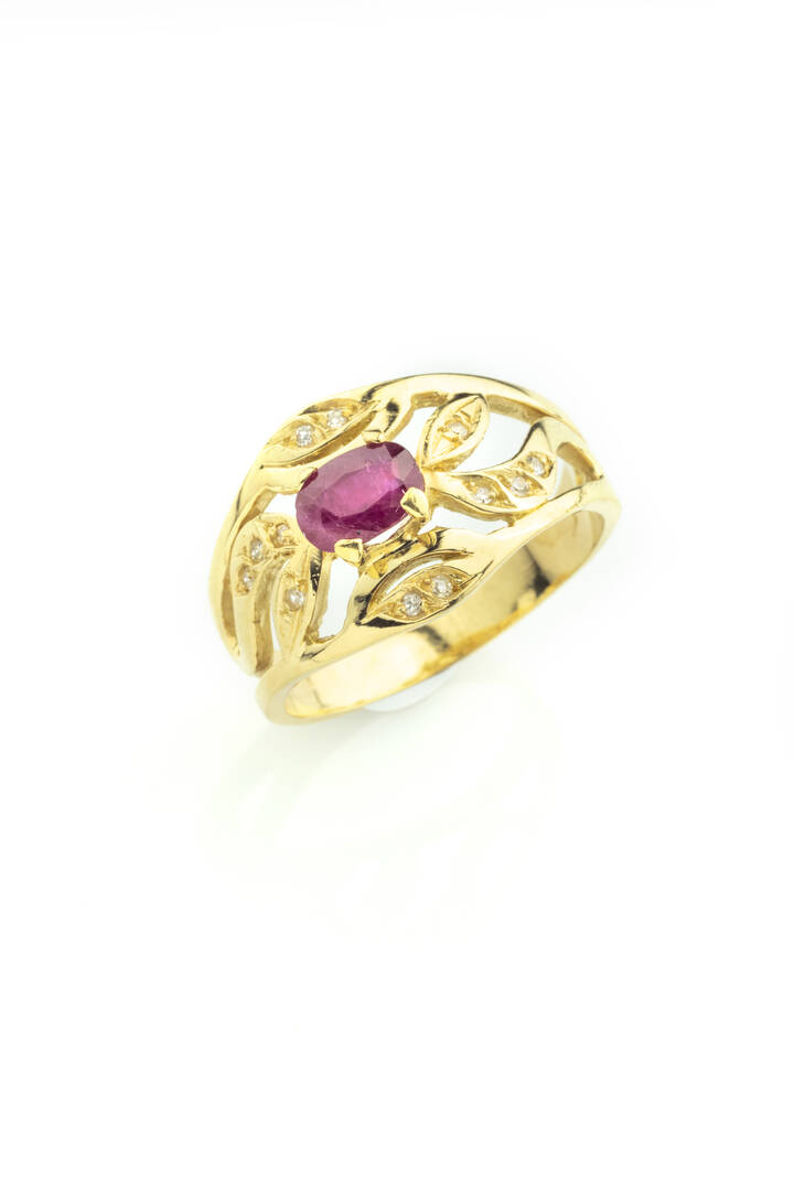 composto da: -Coppia di orecchini nei tre colori dell'oro a lobo di forma ovale firmati Quadri. Peso gr 7 8 -Coppia di orecchini in oro giallo a cerchio. Peso gr 3 3 -Anello in oro giallo con al centro un rubino taglio ovale di ct 0 40 ca; piccoli diamanti a decoro. Peso gr 4.4. Misura16