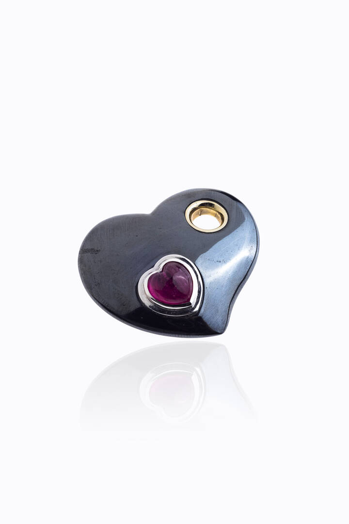 in ematite a forma di cuore con tormalina taglio a cuore cabochon ed anello in oro [..]