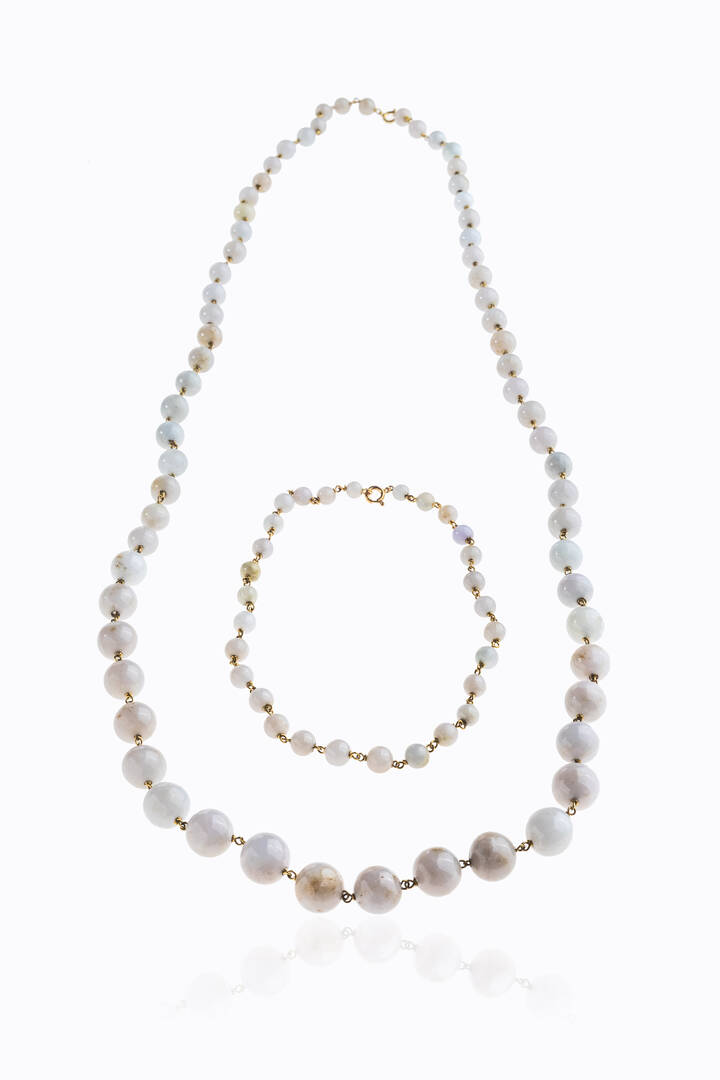 Lunghezza cm 34 e 97 composto da collana e girocollo con sfere di pietre dure (difetti). [..]