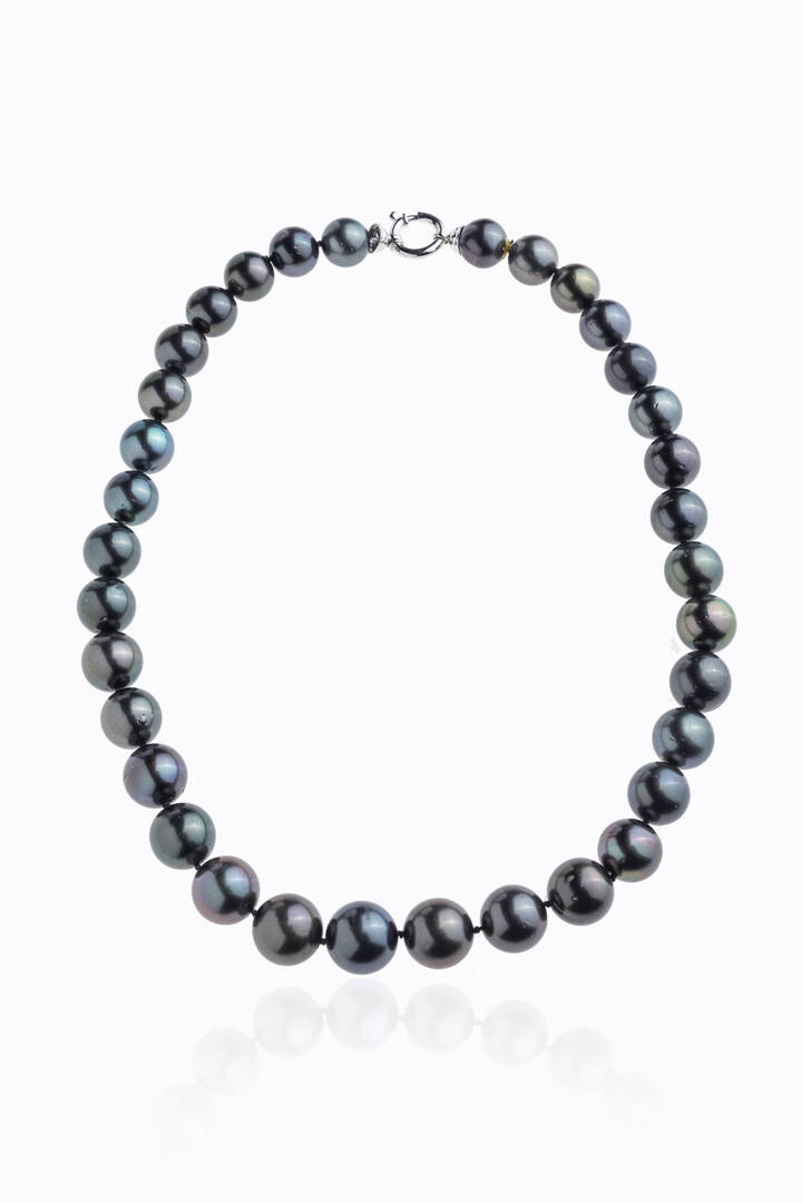 Lunghezza cm 43 composto da un filo di perle Tahiti dal diam di mm 11 a 13 4. Chiusura in oro bianco ad anello