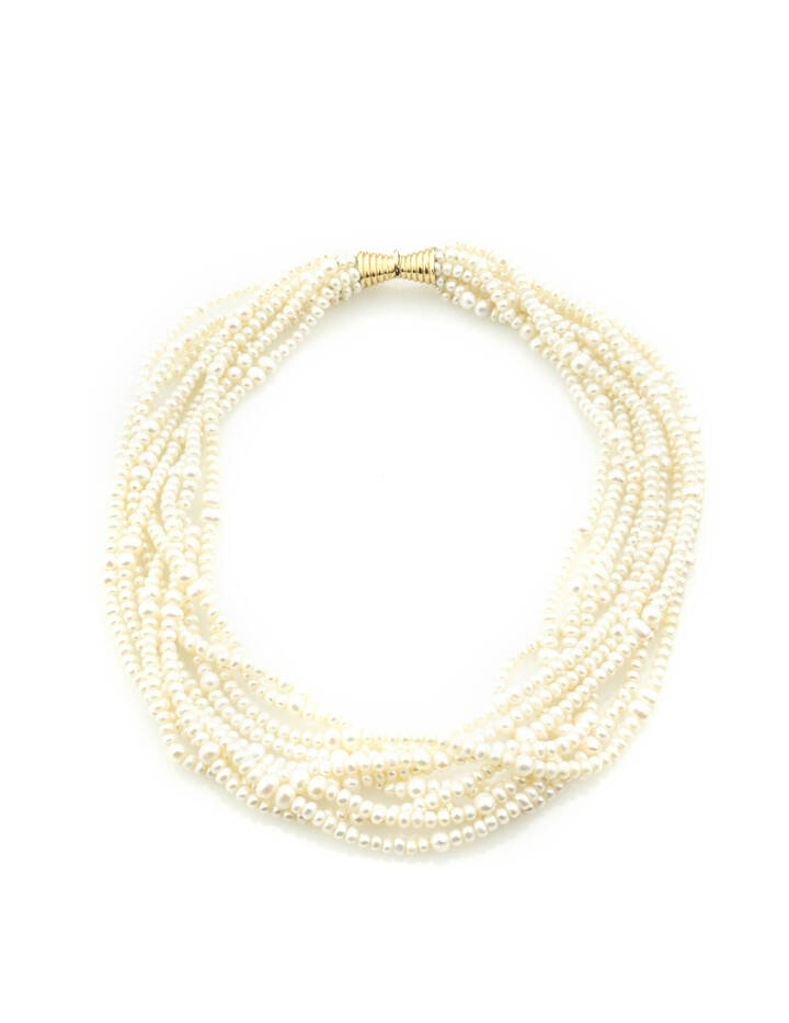Lunghezza cm 48 composta da nove fili di perline di acqua dolce di forma cipollina. [..]