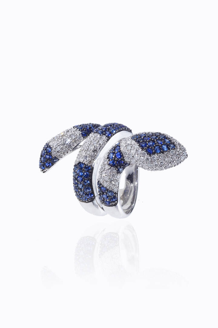 Peso gr 14 4 Misura 14 (54) in oro bianco a forma di serpente con zaffiri taglio rotondo per totali ct 2 50 ca e diamanti taglio 8/8 per totali ct 1 20 ca