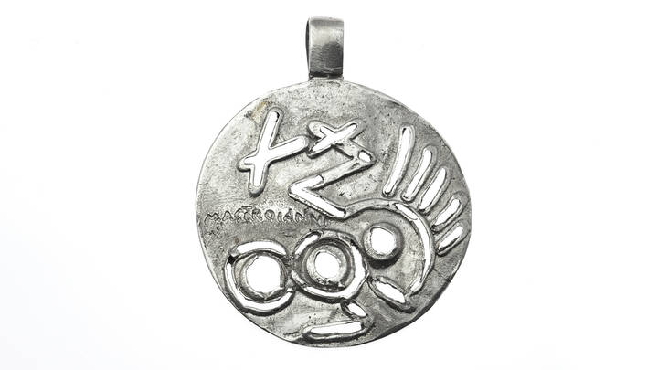 Peso gr 15 2 Ciondolo in argento 925/1000 firmato Mastroianni di forma rotonda con incise forme astratte