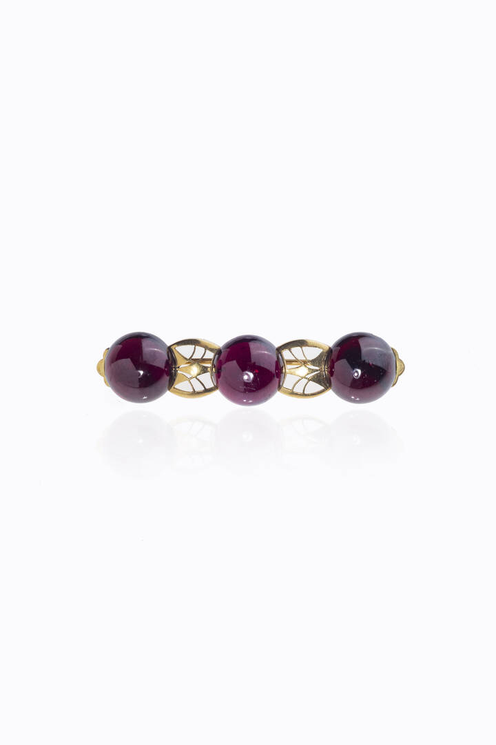 Peso gr 15 5 CM 1X6 in oro giallo a bassa caratura a barretta con granati cabochon