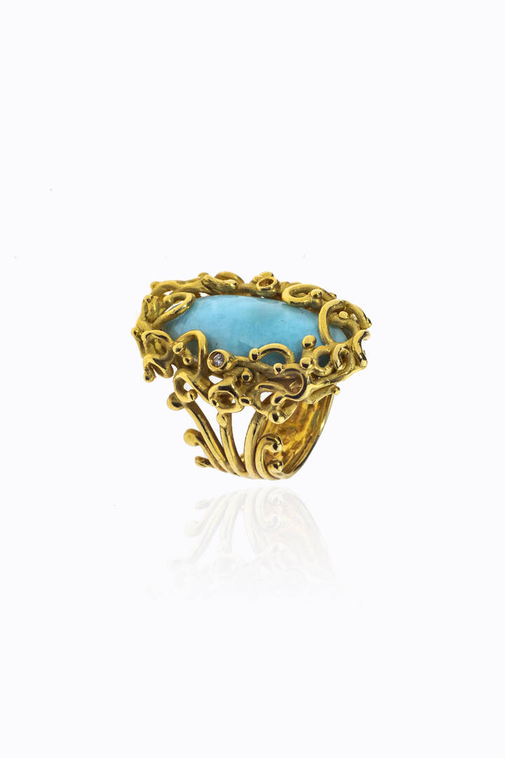 Peso gr 15 5 Misura15 (55) in oro giallo lavorato a volute al centro losanga in avventurina taglio cabochon