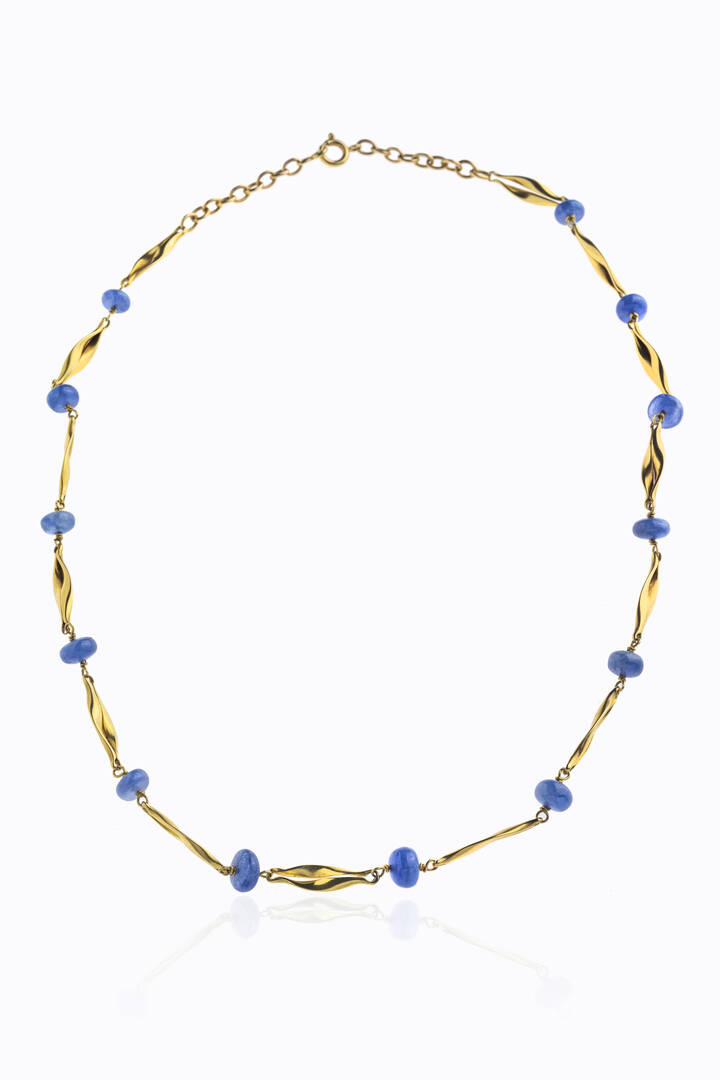Peso gr 20 0 Lunghezza cm 47 composta da segmenti in oro giallo alternati a dischi di zaffiri