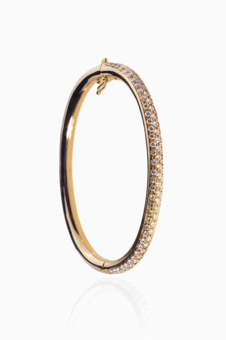 Peso gr 21 3 rigido in oro rosa con parte centrale in pavé di diamanti taglio brillante per totali ct 2 0 ca probabile colore G-H purezza IF-VVS