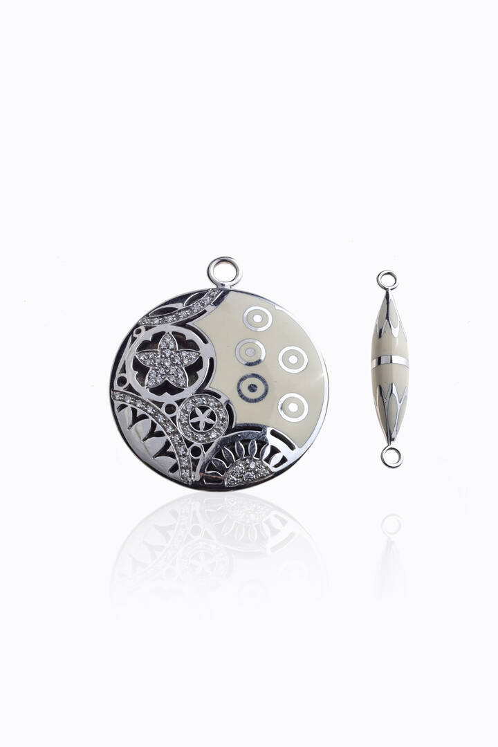 Peso gr 22 5 Coppia di due ciondoli in oro bianco uno firmato Nouvelle Bague con [..]