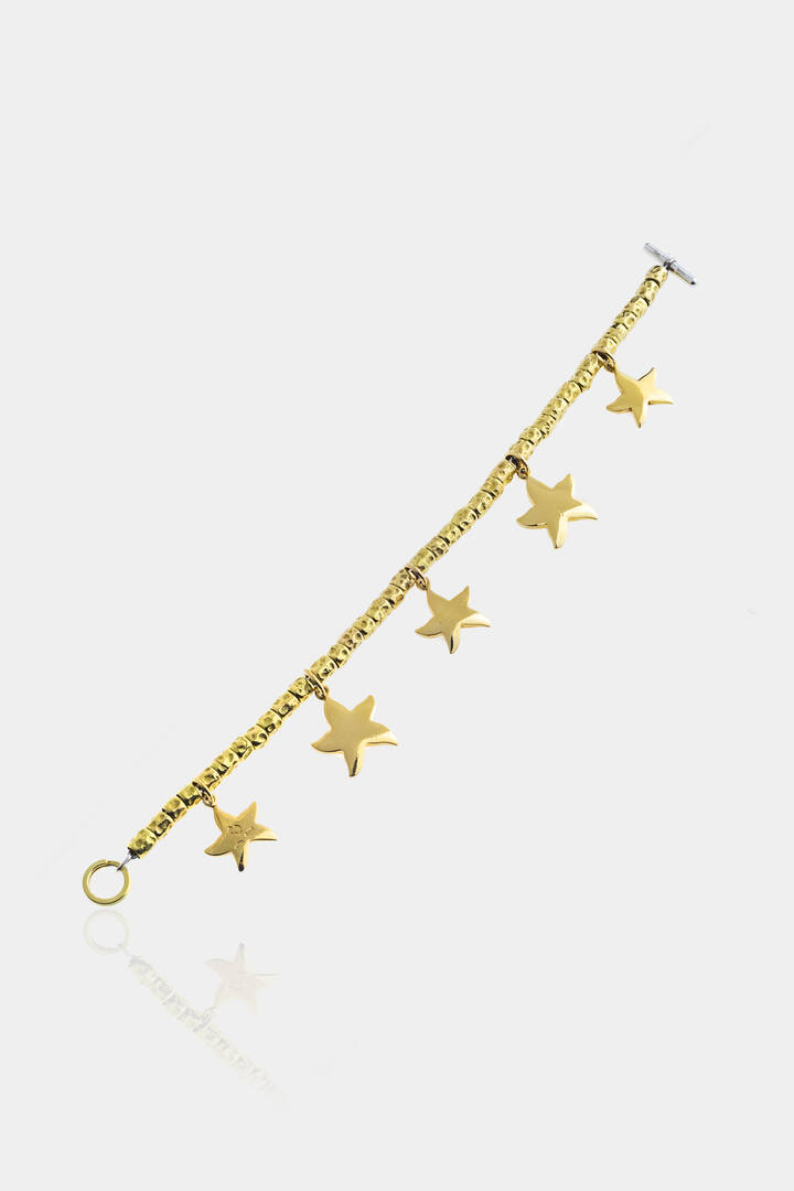 Peso gr 24 2 Bracciale in oro giallo firmato Pomellato linea Dodo con grani in oro giallo e cinque charms pendenti a forma di stella (due grandi e tre medi)
