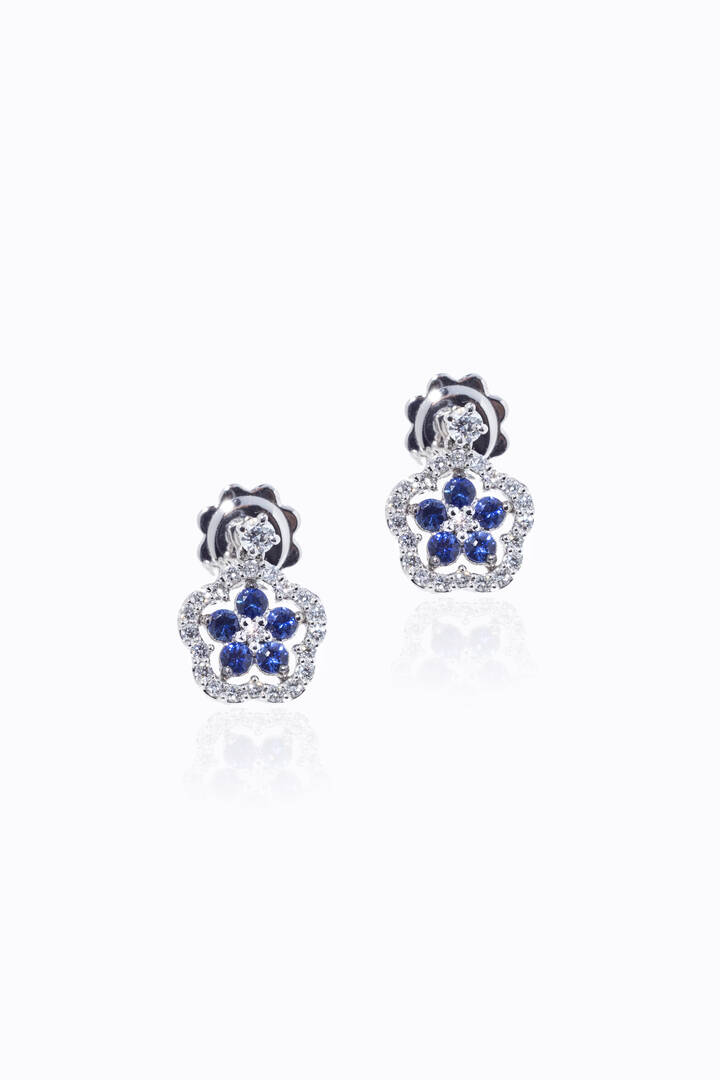 Peso gr 3 1 in oro bianco con fiori in zaffiri taglio rotondo per totali ct 0 40 ca e diamanti taglio brillante per totali ct 0 35 ca probabile colore G-H purezza IF-VVS