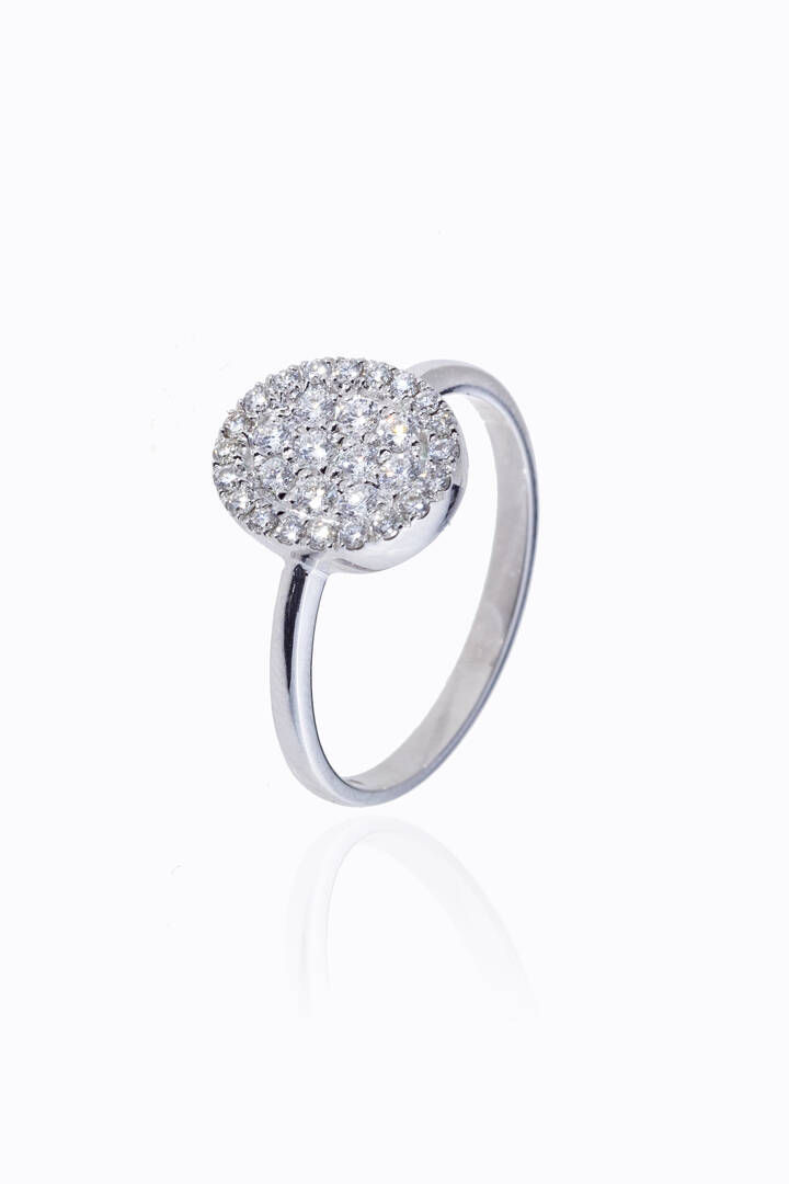 Peso gr 3 1 Misura 15 (55) in oro bianco sommitŕ con ovale in pavé di diamanti taglio brillante per totali ct 0 42 ca probabile colore G-H purezza IF-VVS