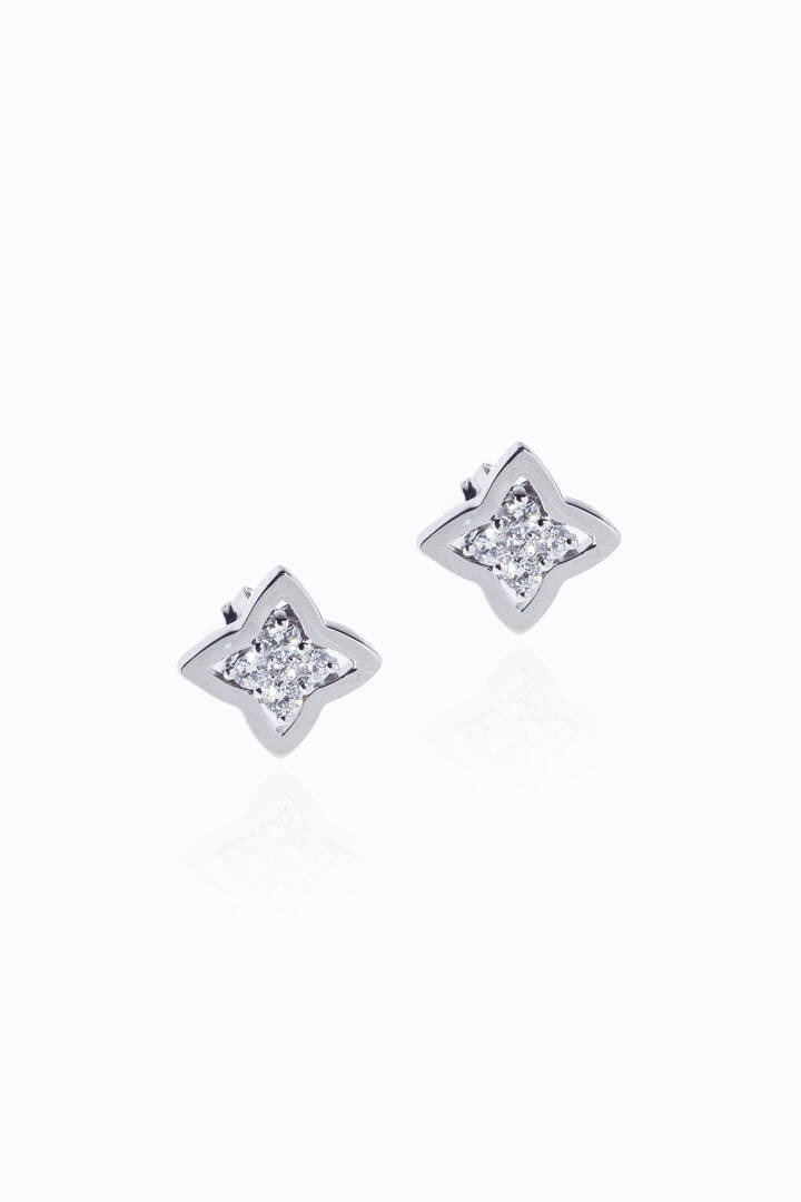 Peso gr 3 8 in oro bianco a lobo a forma di quadrifoglio stilizzato con diamanti taglio brillante per totali ct 0 38 ca probabile colore G-H purezza IF-VVS