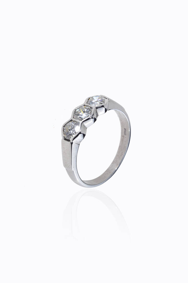 Peso gr 4 3 Misura 15 in oro bianco modello trilogy con tre diamanti taglio brillante per totali ct 1 20 ca