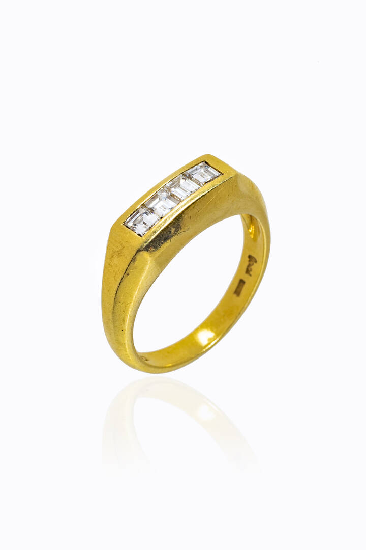 Peso gr 5 1 Misura 13 (53) Anello firmato Damiani in oro giallo con quattro diamanti taglio carré per totali ct 0 50 ca probabile colore G-H purezza IF-VVS.