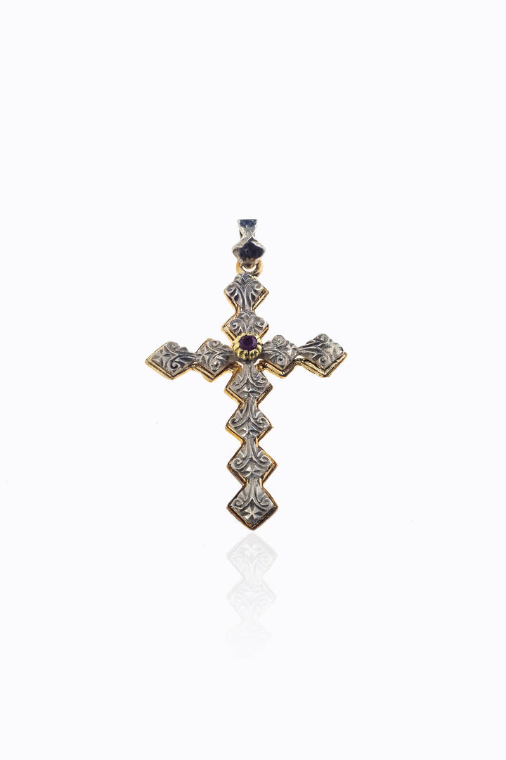 Peso gr 5 6 in oro giallo a bassa caratura e argento inizi XIX secolo a forma di croce con rubino al centro