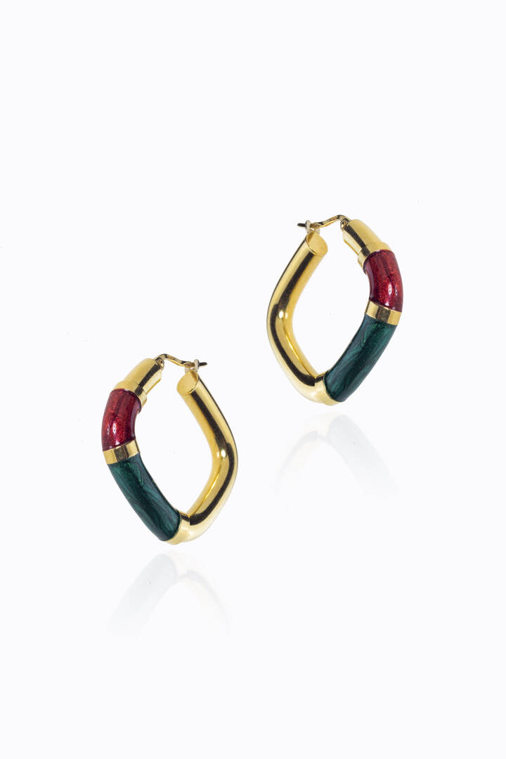 Peso gr 6 1 in oro giallo a cerchio squadrato con smalto verde e rosso al centro