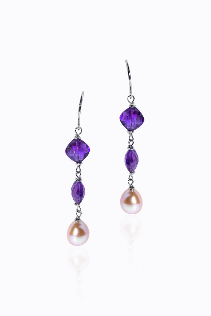 Peso gr 6 4 pendenti ad amo con ametiste taglio rotondo sfaccettate terminante con due perle di acqua dolce nei toni del rosa