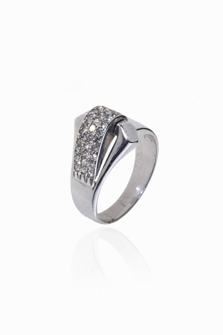 Peso gr 7 5 Misura 18 (58) in oro bianco sommità a voluta con diamanti taglio [..]