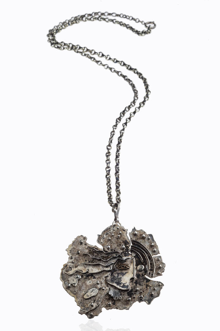 Peso gr 72 3 Catena con ciondolo in argento firmato Alcoy raffigurante volto femminile stilizzato (pezzo unico)