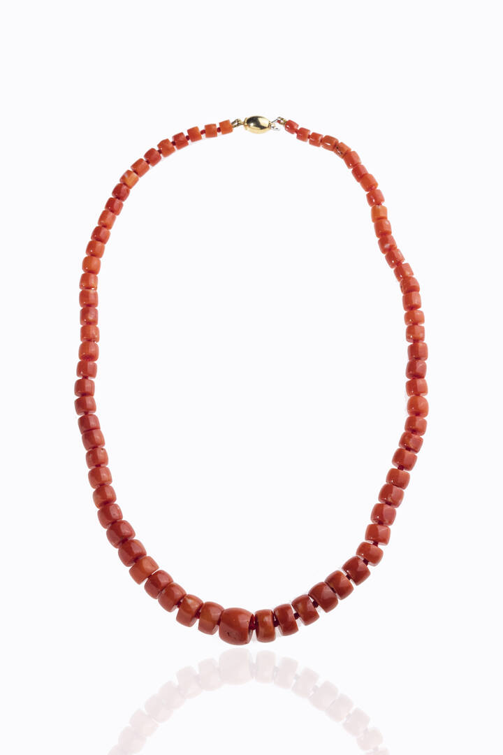 Peso gr 75 6 Lunghezza cm 58 composta da un filo di barilotti a scalare di corallo [..]