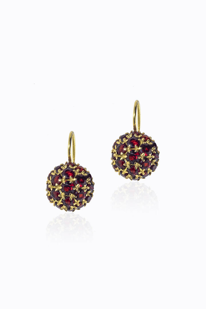 Peso gr 8 6 in oro giallo a monachella a semisfera con granati taglio rotondo