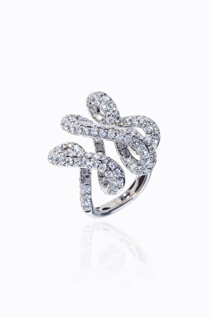 Peso gr 8 9 Misura 15 (55) in oro bianco sommità a nastro con diamanti taglio brillante per totali ct 2 80 ca