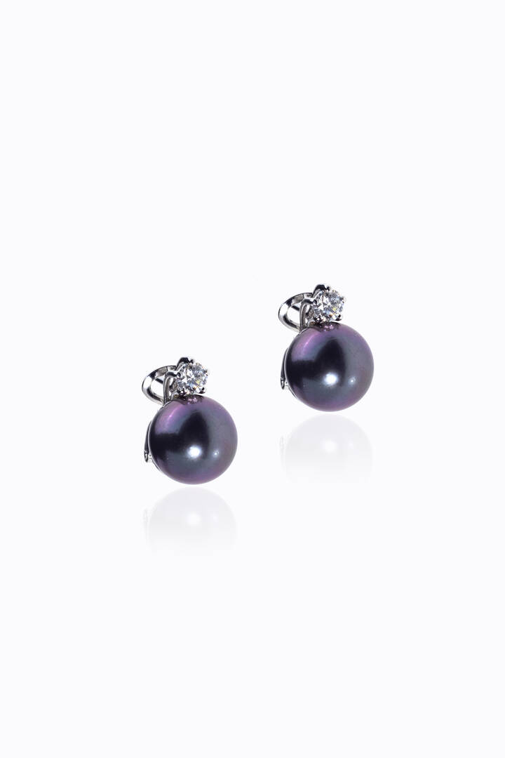 Peso gr 9 3 in oro bianco con due perle Tahiti del diam. di mm 12 ca sormontate da due diamanti taglio brillante per totali ct 0 50 ca probabile colore G-H purezza IF-VVS