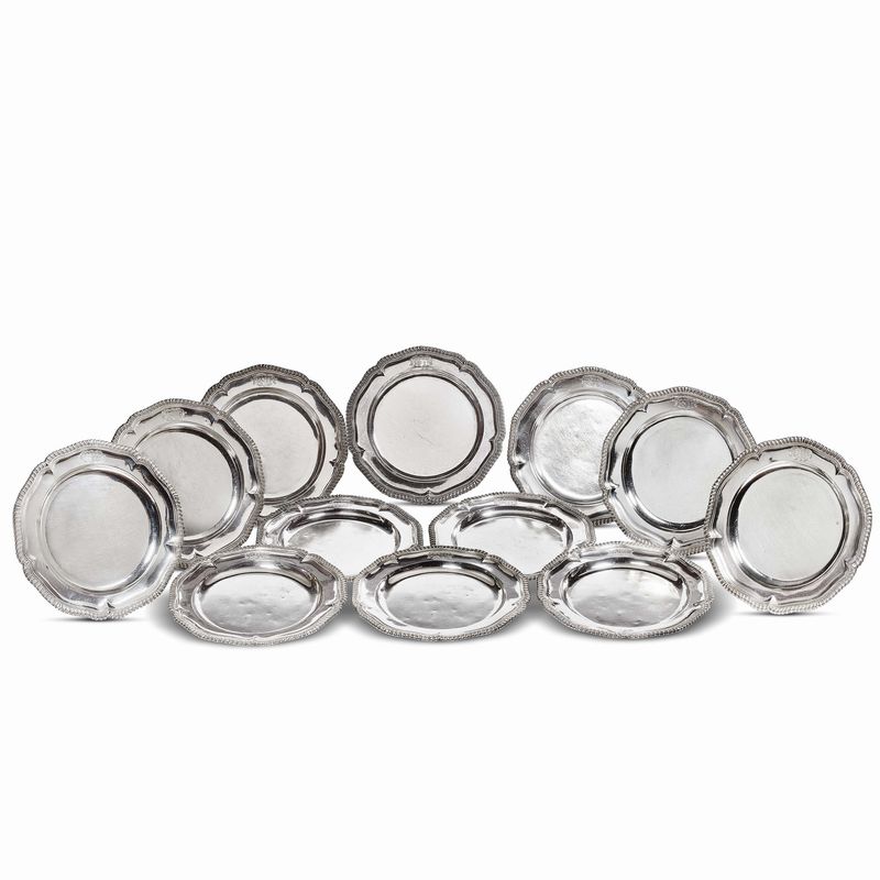 DODICI PIATTI, ARGENTIERI DANIEL SMITH & ROBERT SHARP, LONDRA, 1784