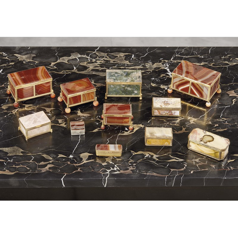 in pietre dure montate in metallo dorato, di varie forme e dimensioni, largh. cm da 3 a 11