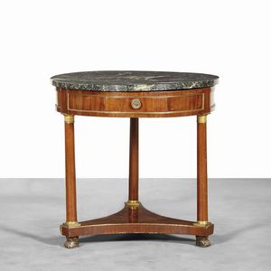 TAVOLO DA CENTRO, TOSCANA, INIZI SECOLO XIX di forma circolare, in legno chiaro con montature in bronzo dorato [..]