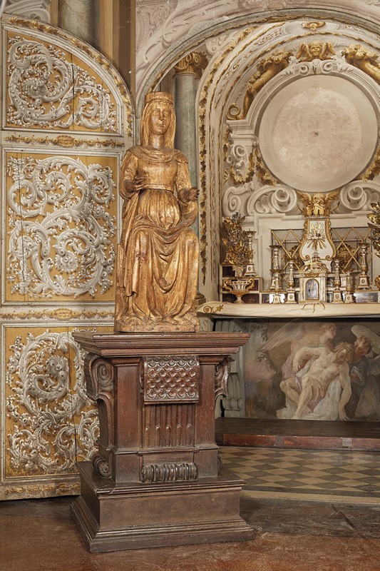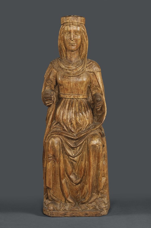 Abruzzese, first half 15th century, Madonna enthroned (Madonna of parturition), wood, 124x45x34 cm
