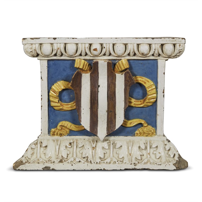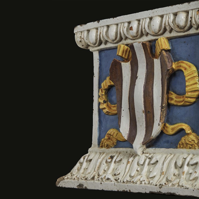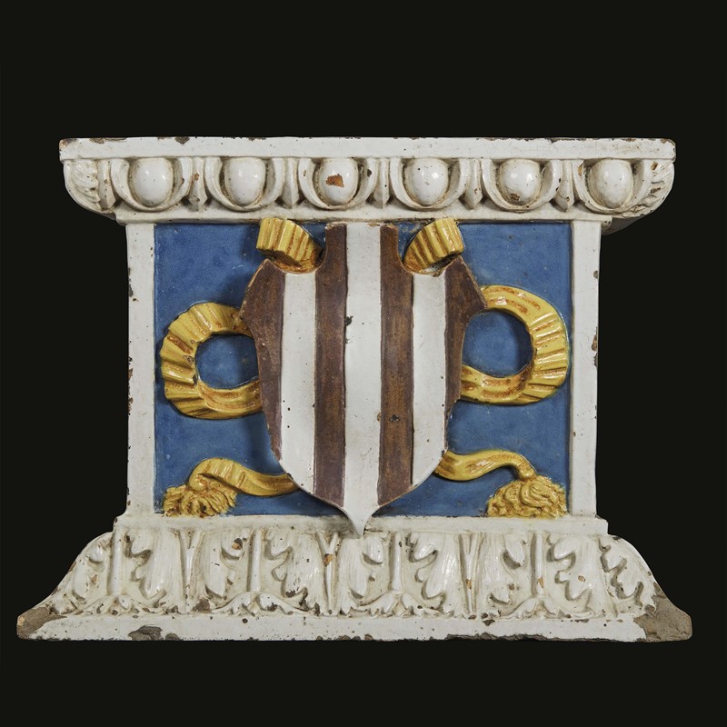 Workshop of Andrea della Robbia, circa 1510, A relief with coat of arms, polychrome glazed terracotta, 28,5x38x10 cm
