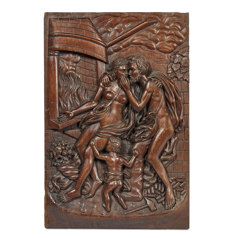 Central Europe, 18th century, Jupiter and Europe - Ephesus and Pandora, mahogany, 26x31,5 cm (each)