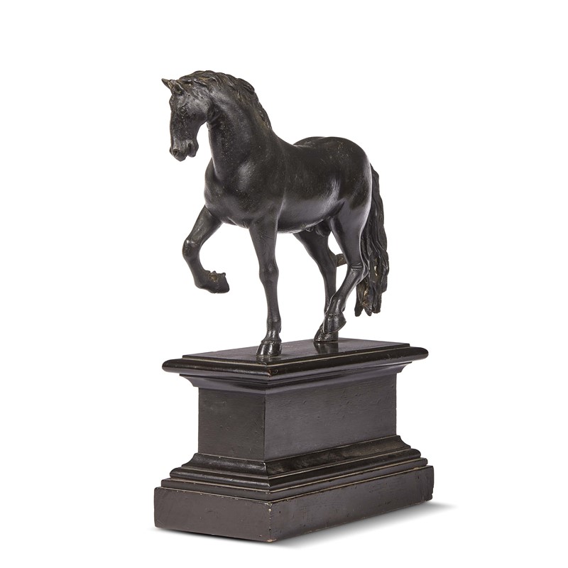 Florentine, 16th century, A pacing horse, bronze, 17,5x20x6 cm on a wooden base, 10,3x17,5x8,6 cm