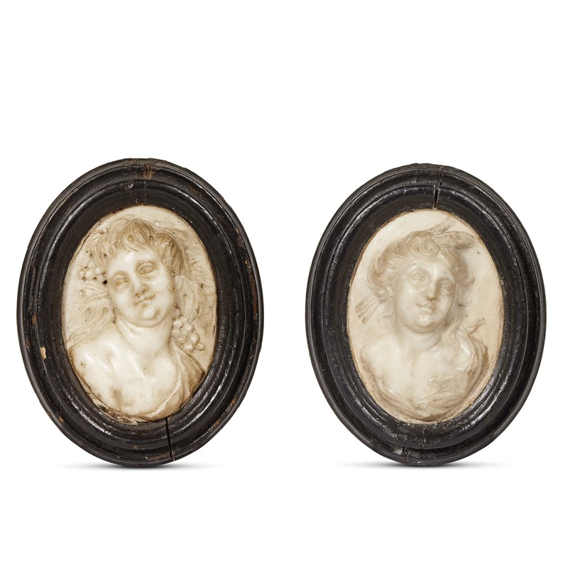 Central Italy, 18th century, Allegories of Summer and Autumn, white marble, 23x15,5x4,8 cm
