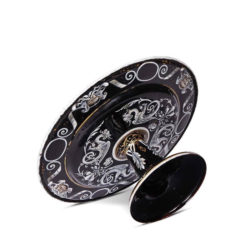 Limoges, 19th century, a cup (September) after the Season series by Pierre Reymond (1513-1584), polychrome enamels in relief, h.10 cm, diam. 21,5 cm
